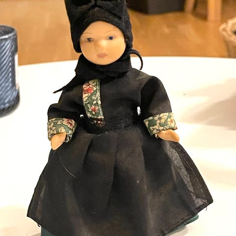 Perfekt som samlerdukke, pynt eller til et retro dukkehus.