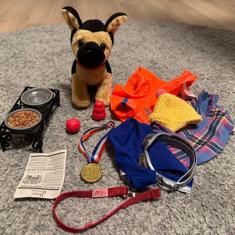 Dette er et poseable og fleksibelt Newfoundland hvalpelegetøj fra Our Generation collection. Det er klædt i en orange og blå tøj jakke og briller. Hvalpen er lavet til at være venlig og trofast, som skrevet på pakken. Produktet er beregnet til børn fra 2 år og op. Hunden kan bruges som tilbehør til 18-tommers dukker eller som et selvstændigt legetøj. Pakken har information på flere sprog, og legetøjet kan poseres i forskellige stillinger.