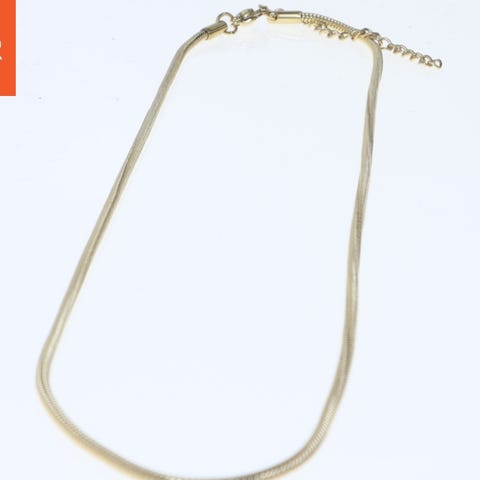 Halskæde lavet af en tynd guldkæde med et unikt vedhæng formet som en lille krukke. Vedhænget har en skinnende metals overflade og er forsynet med små detaljer. Halskædens længde er 72 cm. Tags: smykke, halskæde, krukkevedhæng