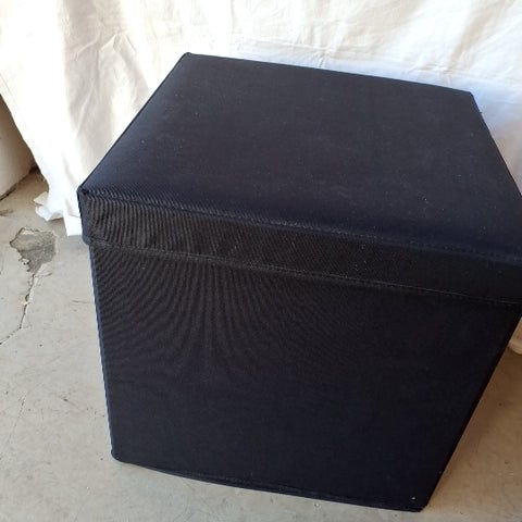 Denne er en kvadratisk flettet opbevaringskasse med et mønstret design af sorte og hvide farver. Den har et låg, som kan fjernes, hvilket gør det nemt at få adgang til indholdet. Kassen er 20x20 cm i størrelse og har et praktisk indbygget håndtag til nem bæring. Denne kasse er ideel til organisering og opbevaring af små genstande i hjemmet.