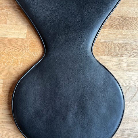 Dette er en sadeltaske lavet af sort læder, designet til at være fastgjort til en sadel på en cykel eller motorcykel. Tasken har en lynlås for sikker lukning og beskyttelse af dens indhold. Den er robust og praktisk til opbevaring af mindre genstande, mens du er på farten. Med dens størrelse på 75 cm er den ideel til daglige behov.