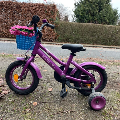 Børnecykel med støttehjul 12 tommer hvid og lilla