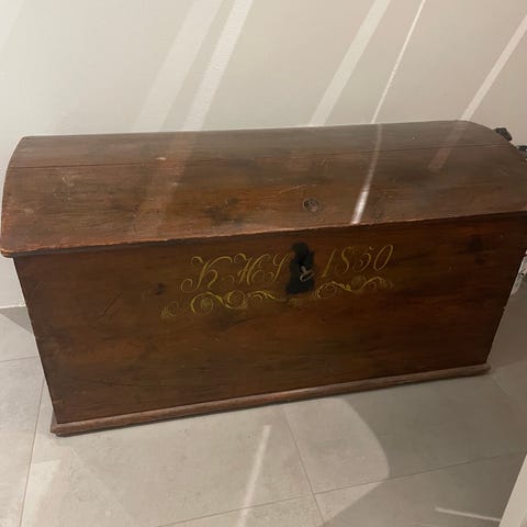 Antik Trækiste med Låg og Indvendig Opbevaring
