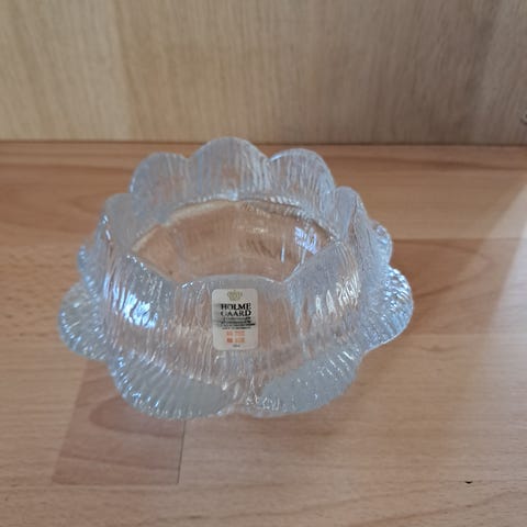 Fyrfadslys, To lysestager som minder meget om Holmegårds men er i tvivl, derfor den lave pris. Stagerne er uanset navn enkle og elegante i designet . Set foroven minder de i sin udformning om en blomst, siderne på dem er riflet.