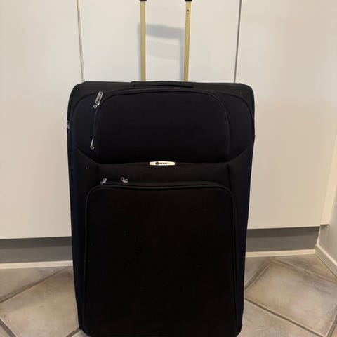 God kuffert der kan udvides med lynlåsen og der indvendig net hjul og håndtag til at trække ...