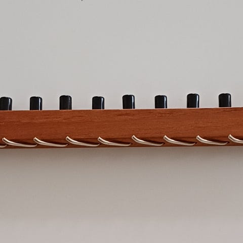 Slipseknage teak (tror jeg) og messing, knager til ophængning af slips. Længde 34cm. Lette brugsskrammer ellers fin stand.