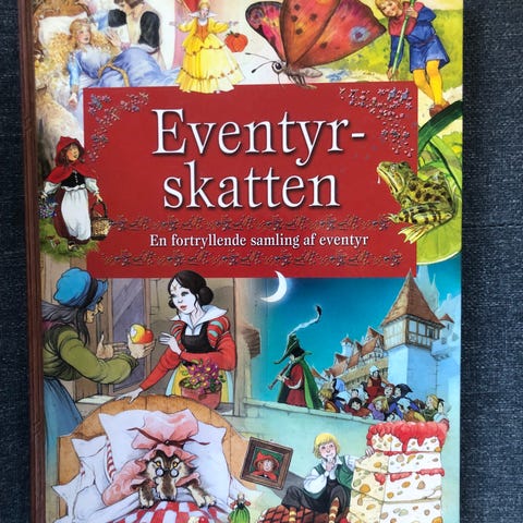 De tre små grise, Den bestøvlede kat, Hans og Grethe, Pinocchio, Rødhætte, Guldlok og de tre bjørne, Tornerose, Alice i Eventyrland, Hans og bønnestagen samt Snehvide, Tyk bog med blødt omslag, dog er ryggen løs, så lim. klassiske eventyr med flotte illustrationer, forlaget Rebus