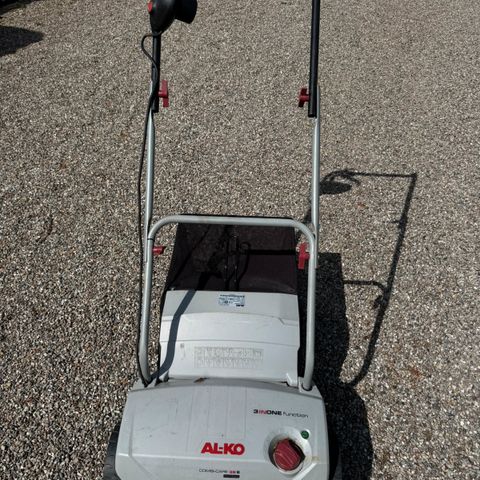 AL-KO Combi Care 34 E elektrisk vertikalskærer med en klippebredde på 34 cm. Udstyret med en opsamlerpose til græs og en elektrisk motor. Velegnet til mindre græsplæner. Farve: grå og rød. Materiale: metal og plastik.