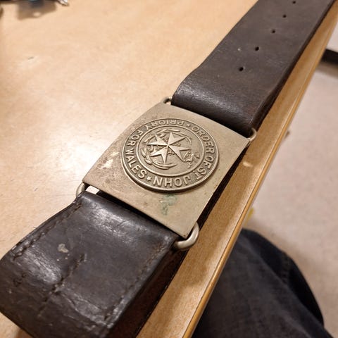 Kraftigt læderbælte til bæring af - dolk - måske lettere sabel
