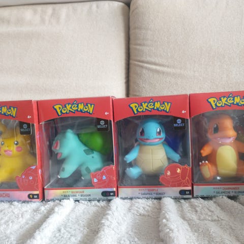 Sølvfarvede Pokémon-jubilæumsfigurer af Pikachu og Bulbasaur.
