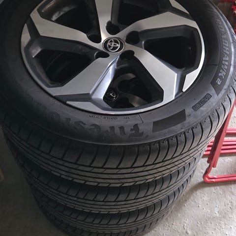Bridgestone sommerdæk med fælge til Toyota RAV4 i rigtig pæn stand.
