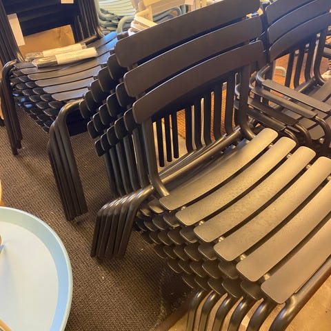 Der er i alt 6 stole, de sælges enkeltvis, men man kan få rabat ved køb af alle 6.