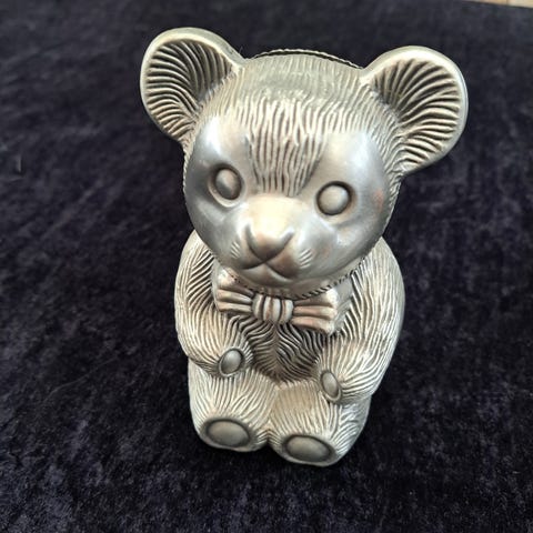 Sparebøsse 12 cm, Bamse med unge i sølvmaling