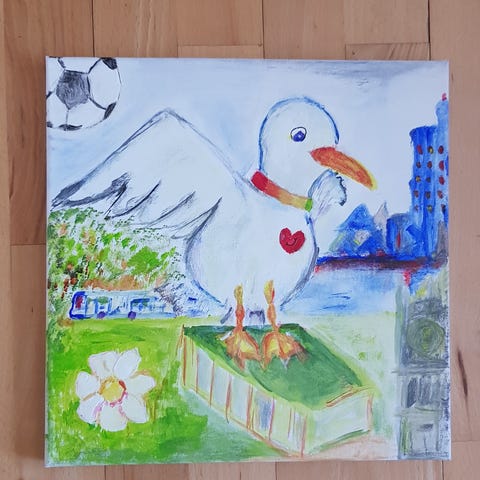 Akrylmaleri, Billede af Pernille Krogh - det er købt i Randers og skulle være et af kunstneren’s tidlige værker.