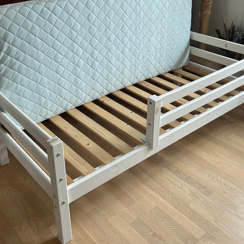 Brandbilseng med plads til både at sove og lege. Sengen er ca. 90 x 180 cm (madras kan medfølge).