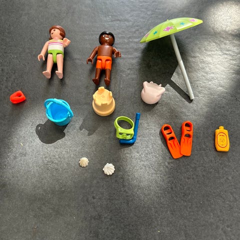 Playmobil sommer sjov 6159 Legesættet kan foldes sammen og tages med. Indeholder en strandbungalowscene med terrasse. Solterrasse øverst med havudsigt. Legesættet har et børnebassin, der kan fyldes med vand, og en liggestol. Indeholder en Playmobil-mor med sine børn og barnevogn samt en kat og en hund m.m.