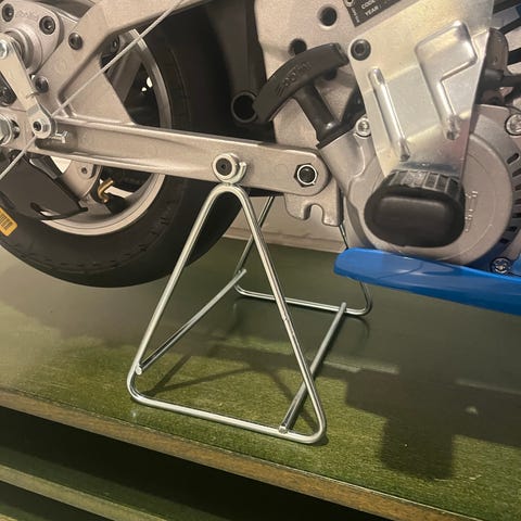 . Spænd forhjulet i standeren og juster derefter afstanden mellem forhjul og baghjul ,så er det bare at give gas . Kan også bruges til indlæring af kobling og gear skift for nybegynder .