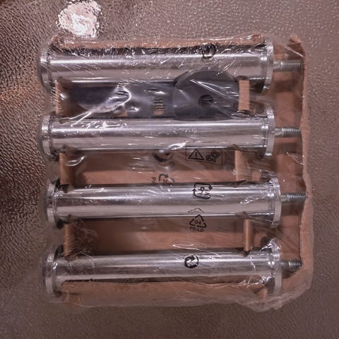 Helt nye sengeben støtteben. Cirka 10 cm høje, cirka 17 med beslag.