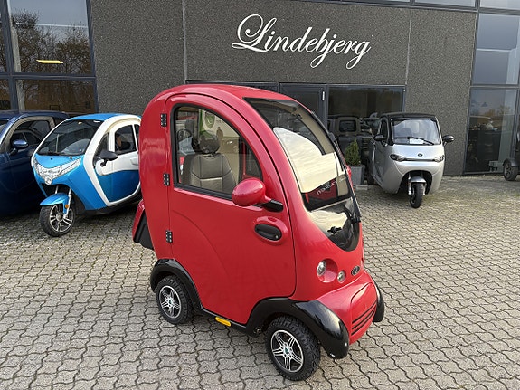 Brugt luksus kabinescooter med god plads til 2 personer. Kabinescooteren er udstyret med alt det nødvendige tilbehør og står i en flot rød farve. Dette køretøj er perfekt til kørsel året rundt og sidder trygt i ly for vind og vejr.