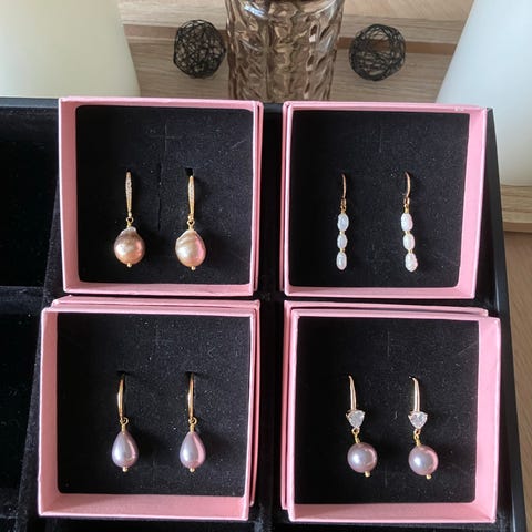 Hjemmelavede forgyldte øreringe med ferskvandsperler