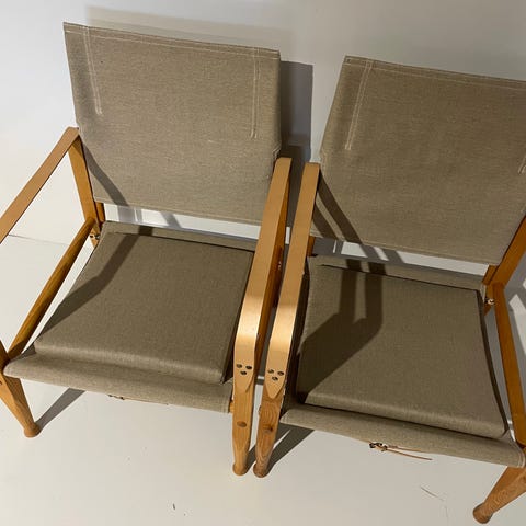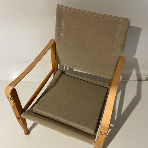 Kaare Klints Safaristol fra 1933 er et ikonisk eksempel på dansk møbeldesign, inspireret af britiske militærstole. Den er let, nem at samle uden værktøj og fremstillet i massivt asketræ med sæde og ryg i læder eller canvas. Stolen kombinerer funktionalitet med tidløs æstetik og håndværk i høj kvalitet.