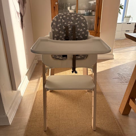 Stokke Højstol i rosa farve. Fremstillet i holdbart materiale med justerbar sædehøjde og fodstøtte. Designet til børn, der har brug for en ergonomisk siddeplads ved bordet.