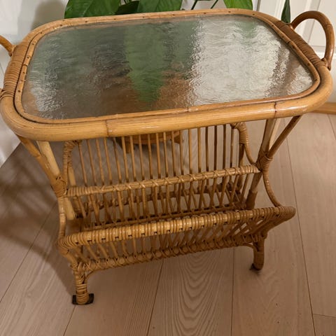 Rigtigt lækkert fejlfrit Bambusbord med glasplade