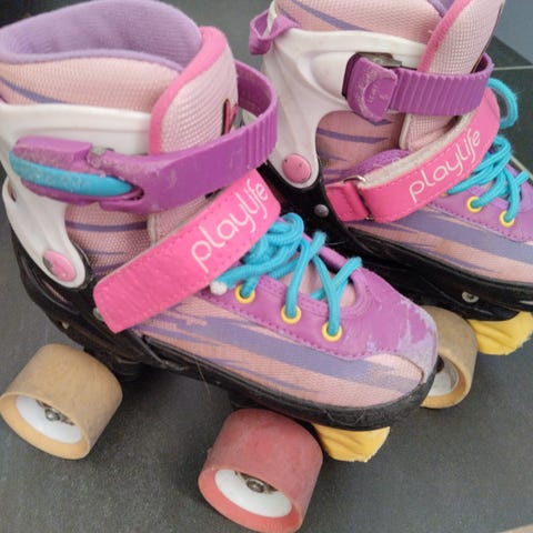 Sælger disse fine rulleskøjter med lys i føreste hjul. De er kun brugt indenfor.