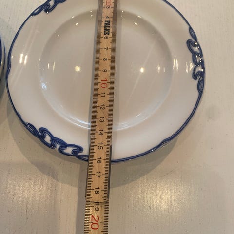 Forskellige tallerkener med lidt misfarvning, skår eller revner - nogle kun på bagside, andre synlige