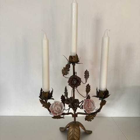 Flot lysestage med dobbelthovedet ørn i messing og bronze. Lysestagen som er udført i centraleuropæisk stil er fra slutningen af 1800-tallet. Dobbeltørnen er formentlig en reminiscens fra det Østrig-Ungarske rige og er symbol på dobbeltmonarkiet. Stagen er udført i solide materialer og har plads til to stearinlys. Stagen er ens på begge sider og egner sig derfor også til at stå på et spisebord.