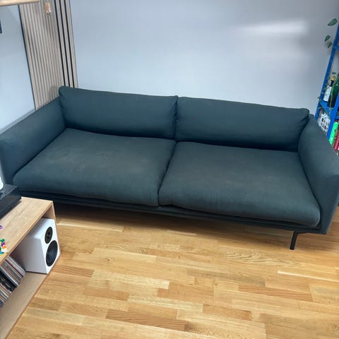 En fantastisk sofa, der med sin robuste konstruktion er bygget til langvarig brug. Sofaen er fuldbetrukket med slidstærkt tekstil i en mørk blå farve, der gør sofaens udtryk stilren og alsidig.