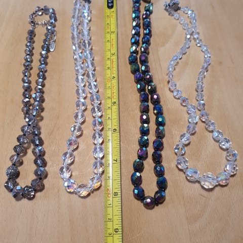 Smuk gammel halskæde, der stråler i rosa og grønne nuancer.