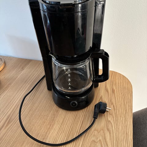 Braun kaffemaskine med sort finish og glaskande med kapacitet på 1,5 liter. Maskinen har flere funktioner inklusive start, timer, kalkrens, ur, indstilling af styrke og kopstørrelse. Designet til at brygge kaffe til husholdningsbrug.