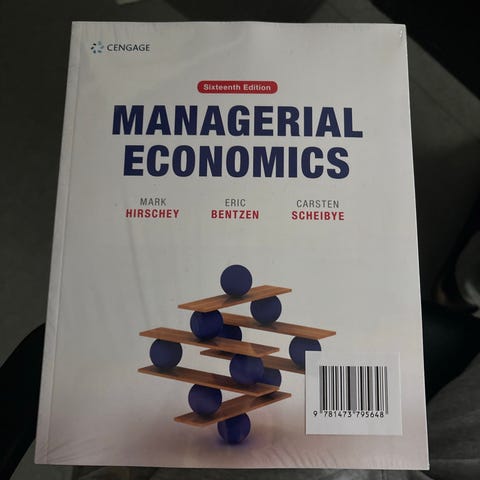 Managerial Economics, 16 udgave, Mark Hirschey, Eric Bentzen og Carsten Scheibye.