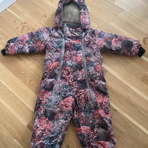 Funktionel printet flyverdragt til børn i slidstærkt materiale. Aftagelig hætte med fleece for og aftagelig pelskant (kunstig pels). Hagebeskyttelse ved lynlås og 3M refleksdetaljer. Forstærkende stof på knæ. Tapede sømme. Justerbare støvlestropper i gummi. Vandtæt 10.000 mm. Vindtæt. Åndbar 4.000 g/m2 24h. BIONIC-FINISH®ECO behandlet. Indeholder 100% polyester.
