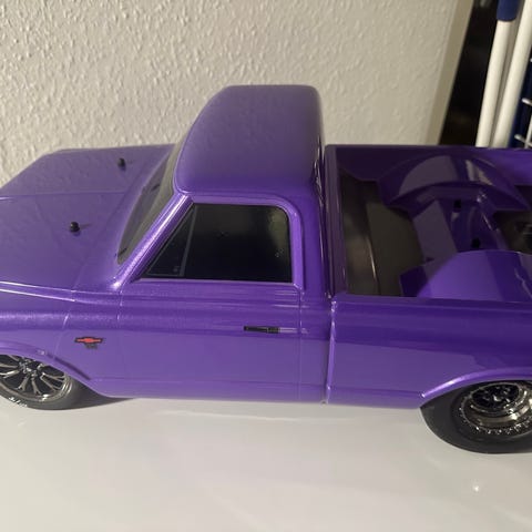 Bilen er købt i februar 2025. Der er efterfølgende også blevet skiftet 4 nye hjul, ny stærkere 35kg’s servo og GPM Quick release motor mount. Original hjul medfølger også. Det ene er dog “eksploderet”. Batteriholderen er også blevet modificeret, så den kan indeholde de store 6S batterier.
