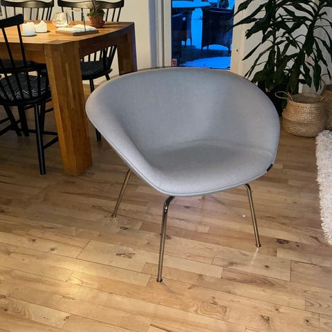 Fritz Hansen loungestol designet af Arne Jacobsen model 3318 også kaldet ´Gryden`. Når æstetik og enkelthed går op i en højre enhed samtidig med den normale høje kvalitet fra fra Fritz Hansen rammer man denne lækre stol.