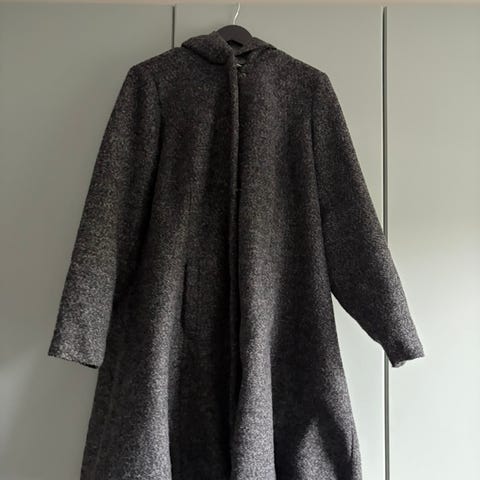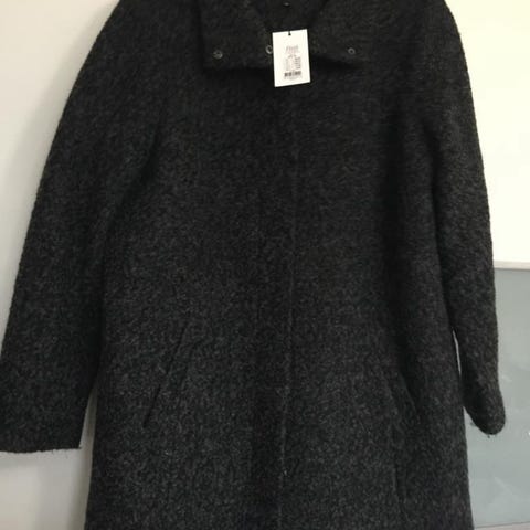 Zizzi frakke i størrelse 46 til kvinder. Frakken er grå og har lommer foran. Frakken har en tekstureret overflade.