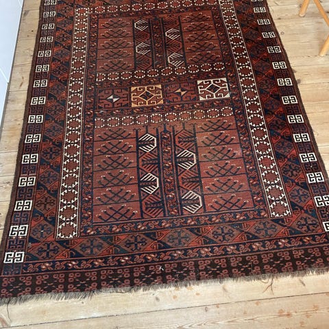 Håndvævet afghansk Ersari tæppe fra ca 1975 elefantfod forbundet med rækker af små stjerner og kroge 100% uld