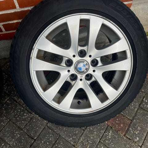 Fine bmw stålfælge med originale bmw tops ventiler og originale hjulkapsler.