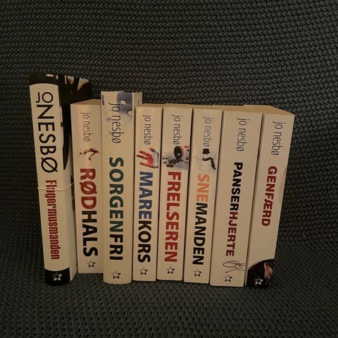 De første ti bøger i serien om Harry Hole skrevet af Jo Nesbø. Alle bøgerne er i fin stand. Og alle på nær bog 2 er i hardback.