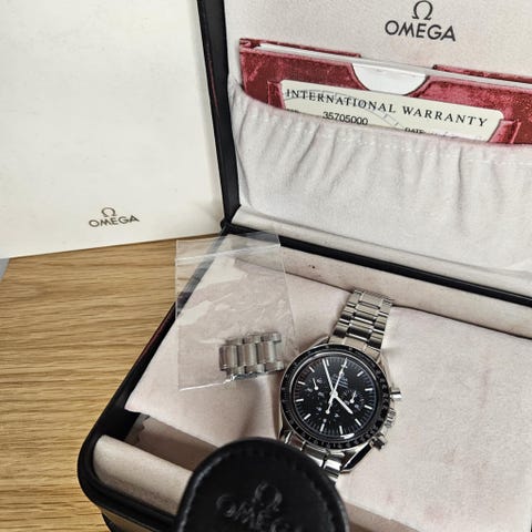 En legendarisk model fra Omega, kendt som den første urserie, der blev båret på månen. Ref. 145.022 er udstyret med det ikoniske manuelle Calibre 861, som afløste det tidligere 321-værk, og blev produceret fra slutningen af 1960’erne. Uret har den klassiske sorte kronografskive med tachymeterbezel og den robuste stålurkasse, der har gjort Speedmaster til et symbol på præcision og eventyr. Et must-have for enhver samler af vintage Omega.