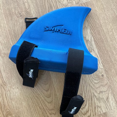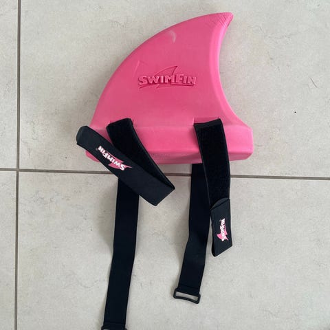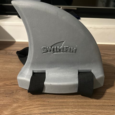 SwimFin hajsvømmefinne i sort farve, designet til at hjælpe med svømmetræning og forbedre svømmefærdigheder. Fremstillet af holdbart materiale med justerbare stropper for sikker pasform. Velegnet til børn der ønsker støtte under svømning.