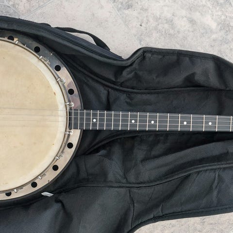 Dette er Gold Tones topmodel bluegrassbanjo. OB 250+ har en bronze tonering af en særlig legering, der er lånt fra den legendariske Gibson Mastertone fra 30’erne og frem. Denne kraftige tonering giver en helt klar lyd, som er større end den alm. OB 250. Halsen er af kruset ahorn, gribebrædtet af ibenholt med perlemorsindlæg og bindinger af lyst birketræ. Resonator og headstock er beklædt med flammet ahorn. Original hardcase. Rem og div. capos. Nypris over 20.000 kr. Hør den her: https://www.youtube.com/watch?v=CL4PilNPf4s&list=RDCL4PilNPf4s&start_radio=1