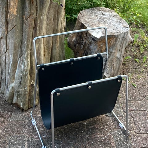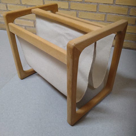Avis- og magasinholder fra BRINK BR40 i eg og sort læder. Nypris 2880