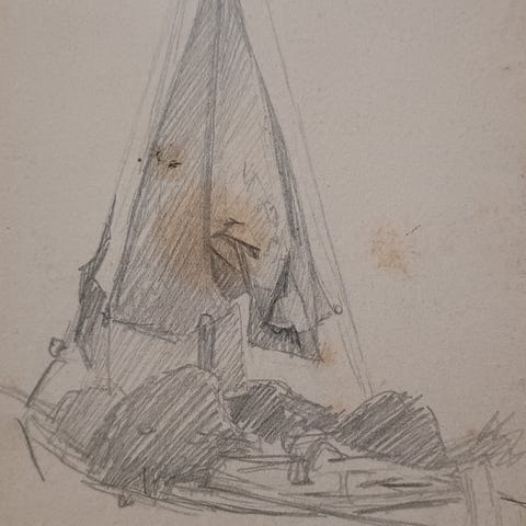 Antik skitse af pige. Axel Johansen 1872-1938