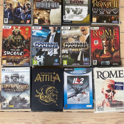 46 spil i alt. Ved en gennemsnit pris på kr. 300 er der spil for kr. 13.800,-
