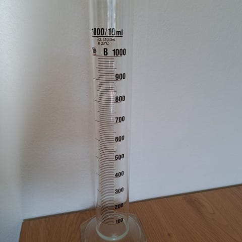 Laboratoriekander, i porcelæn.1000, 500,250 og 125 ml. Højde 19,15,11og 8,5 cm. Med indvendig ml stregopdeling