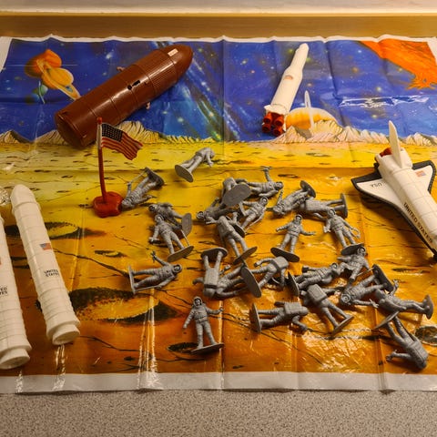 Astronaut space rød/grøn ældre figur. Kan sendes på købers regning