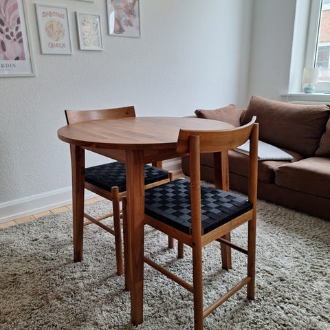 Dining table with two chairs in black in very good condition. See the measurements on the last picture.